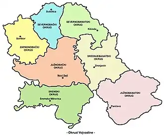 Vojvodina je rozdělena do 7 okruhů (srbsky okrug):