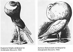 - ↑ a b BUREŠ, Jan. Chov holubů. Praha: Státní zemědělské nakladatelství, 1965. 338 s. Kapitola Přehled plemenných skupin holubů, s. 61–62.