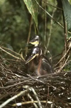 - ↑ a b c d REYNAUD, Pierre Adrien; KUSHLAN, James A. Nesting of the Agami Heron. Waterbirds. 2004-09, roč. 27, čís. 3, s. 308–311. Dostupné online [cit. 2025-08-25]. ISSN 1524-4695. doi:10.1675/1524-4695(2004)027[0308:NOTAH]2.0.CO;2. (anglicky)