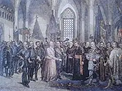 - Slavnostní přísahu věrnosti, poslušnosti a oddanosti novému panovníkovi.