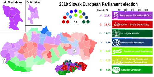 - ↑ TASR. Vo voľbách do EP bude možné hlasovať za kandidátov 31 strán a koalícií. teraz.sk. Bratislava: TASR, 2019-03-05. Dostupné online [cit. 2019-03-06].