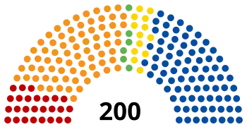 | Předchozí volby (2002) | 24,47 % (58) | 30,20 % (70) | 18,51 % (41) | 14,27 % (31) v koalici s US-DEU |