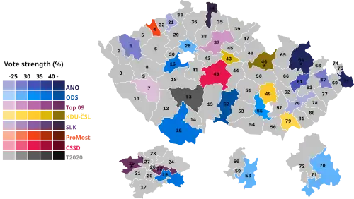 Zdroj: Volby.cz (Hlasy a mandátyVolební účast)