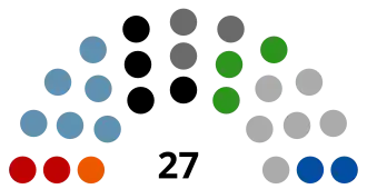 | Strana | Č. | Lídr | Hlasy | % | Mandáty | +/– | ||