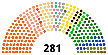 | Celkem 281 poslanců v Poslanecké sněmovně k většině třeba 141