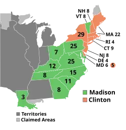 Obecné volby probíhaly 30. října a 16. listopadu 1808 a zúčastnilo se jich 278 786 voličů. Madison získal podporu 50,4 % voličů, Clinton 47,6 % a Rufus King, někdejší kandidát na viceprezidenta, 2 %. Ve sboru volitelů 10. února 1809 vyhrál James Madison se 128 hlasy, přičemž požadovaná většina byla 108. Jeho protikandidát získal 89 hlasů. Elbridge Gerry však zvítězil v hlasování na viceprezidenta se shodnými 128 hlasy. Jared Ingersoll obdržel 86 hlasů na viceprezidenta. Elbridge Gerry, jako případný viceprezident Clintona, obdržel tři hlasy. Celkový počet volitelů byl 217.