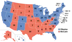 Barack Obama zvítězil ve 28 státech unie a v District of Columbia a získal jeden distrikt v Nebrasce, jeho soupeř John McCain vyhrál ve 22 státech Unie.