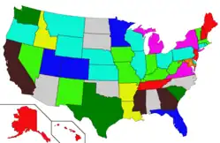 Následující státy umožňují odvolací volby zvolených státních úředníků:[5]