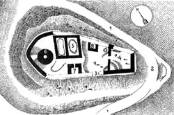 Hrad má téměř oválný půdorys. V čele dispozice stojí okrouhlý bergfrit s plochostropým interiérem. Jedno z pater věže vytápěl krb. Na protější straně hradu stál palác, jehož zrícenina dosahuje výšky dvou pater. Ve zdivu paláce se objevují druhotně použité architektonické články, a proto je možné, že stavba pochází až z pozdějších stavebních fází. U východní hradby pod věží stála torzálně dochovaná dvouprostorová budova a naproti ní věžovitá stavba s čtverhranným půdorysem.