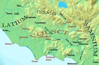 Jedno z těchto střetnutí souvisí s legendárním hrdinou a římským generálem Coriolanem, který získal své čestné cognomen za to, že roku 493 př. n. l. dobyl volské město Corioli. Když musel z Říma uprchnout, uchýlil se k volskému vůdci Tullovi Aufidiovi do Antia (dnes Anzio) a přesvědčil ho, aby Římu vyhlásil válku. Když oblehli Řím, konsulové vyslali posly se žádostí o mír, kterou Coriolanus odmítl. Coriolanova matka a manželka ho však uprosily a válka tak skončila. Tento příběh je základem pro Shakespearovu tragédii Coriolanus.