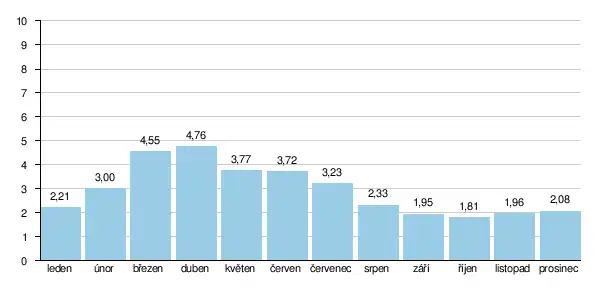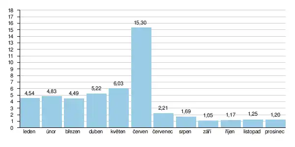Průměrné měsíční průtoky Volyňky (m³/s) ve stanici Němětice v roce 2013:[2]