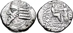 Na obrázku je Vonónova mince. Na aversu je portrét krále a nápis ΒΑϹΙΛΕΥϹ (král), na reversu obraz bohyně Níké a nápis ΒΑϹΙΛΕΥϹ ΟΝΩΝΗϹ ΝΕΙΚΗϹΑϹ ΑΡΤΑΒΑΝ[ΟΝ] (král Vonónés, přemožitel Artabana) | |