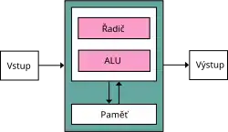 Procesor počítače se skládá z řídící a výkonné (aritmeticko-logické) jednotky. Řídící jednotka zpracovává jednotlivé instrukce uložené v paměti, přičemž jejich vlastní provádění nad daty má na starosti aritmeticko-logická jednotka. Vstup a výstup dat zajišťují vstupní a výstupní jednotky.