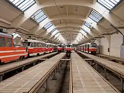 - K 28. prosinci 2019 zde bylo deponováno 32 kusů Tatra T3R.P, 72 kusů Škoda 15T + cvičné a pracovní vozy.