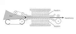 - ↑ a b Manufacturing of Needle Punched Nonwoven [online]. Academia, 2019 [cit. 2019-05-20]. Dostupné online. (anglicky)