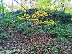 V křovinovém patře k rozmanitosti zdejšího prostředí přispívá líska obecná (Corylus avellana), hloh obecný (Crataegus laevigata), rybíz alpínský (Ribes alpinum), růže šípková (Rosa canina), řešetlák počistivý (Rhamnus cathartica), trnka obecná (Prunus spinosa), třešeň ptačí (Prunus avium), bez červený (Sambucus racemosa), habr obecný (Carpinus betulus).[5]
