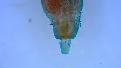 V přední části je zatažitelný otrněný chobotek (proboscis), kterým se dospělí vrtejši přichytávají ve střevě svých definitivních hostitelů. Chobotek je patrně vychlipován hydraulickým tlakem lemnisků (párové váčky v přední části těla; jejich funkce není zcela jasná) a povrchového lakunárního (= s přítomností dutinek) systému trubiček zanořujících se do tegumentu (svrchní vrstva). Zpět ho zatahují specializované svaly (zatahovače, retraktory).[3] Pomocí chobotku vrtejši nasávají živiny z těla hostitele.