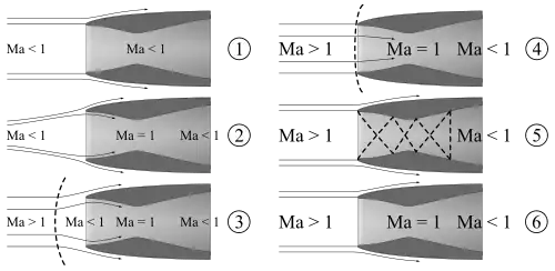 Konstrukce vstupního ústrojí se liší podle rychlosti letu, pro něž je určeno.[1] Podzvukové vstupní ústrojí bývá neregulovatelné, s oblou náběžnou hranou. Naopak vstupní ústrojí motorů nadzvukových letounů má ostré hrany, na kterých vznikají rázové vlny, na nichž se vzduch zpomaluje a usměrňuje (i když se to může zdát paradoxní, při nadzvukovém letu se vzduch vstupující do motoru zpomalit na podzvukovou rychlost hoření směsi palivo-vzduch aby nedošlo ke „sfouknutí“ plamene ve spalovací komoře, a opět se urychluje až ve výstupní trysce). Nadzvukové vstupní ústrojí je většinou regulovatelné tak, aby se docílilo potřebného průběhu rázových vln. Příkladem může být posuvný kužel vstupního ústrojí MiGu-21, který se v závislosti na rychlosti automaticky vysouvá tak, aby první šikmá rázová vlna vedla ze špičky kužele na kruhovou náběžnou hranu sacího otvoru.