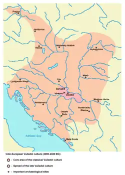 Vučedolská kultura byla eneolitická archeologická kultura, která se rozvíjela na Balkáně zhruba v letech 3000 až 2200 př. n. l. Byla charakterizována především výrobou mědi, s níž byl patrně spjat i její duchovní život - její náboženství bylo kovářsko-šamanské. Centrum bylo ve Sremu a na pravém břehu řeky Dunaje ve východní Slavonii. Později se kultura rozšířila po celé Panonské nížině a na západní a jižní Balkán. Na svém vrcholu zasahovala území čtrnácti současných evropských zemí – Česka (Praha, Jevišovice), Slovenska, Rakouska, Maďarska, Rumunska, Slovinska, Itálie, Chorvatska, Bosny a Hercegoviny, Srbska, Černé Hory, Kosova, Albánie a jedno sídlo bylo Vučedolské kultuře připsáno dokonce ve východním Řecku. Kultura byla pojmenována podle naleziště Vučedol, které se nachází šest kilometrů od města Vukovar v Chorvatsku. Odhaduje se, že toto místo bylo v eneolitu domovem asi 3000 obyvatel, což z něj činilo jedno z největších a nejvýznamnějších evropských center své doby. Obyvatelé byli nejen lovci a rybáři, ale i zemědělci, chovatelé zvířat, zruční řemeslníci a dokonce astronomové. Spekuluje se o obchodních vztazích s Peloponésem. Archeogenetika spojuje kulturu s migrací příslušníků jámové kultury z východních ponticko-kaspických stepí, kteří se pak smísili s balkánskými neolitickými obyvateli.[1] Podle některých badatelů takto vznikl etnický základ budoucích Ilyrů.[2] Vučedolská kultura se vyvinula ze dvou starších eneolitických kultur: bádenské a kostolacké kultury.