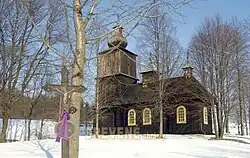 Cerkev svatého Kosmy a Damiána z roku 1924 byla postavena na místě starší dřevěné stavby pocházející z roku 1700 zničené v první světové válce. Kostel je zasvěcen byzantským světcům, bratrům léčitelům Kosmovi a Damiánovi (Cyrilovi a Metodějovi). Má velkou předsíň s hranolovou věží z exteriéru chráněnou vertikálními deskami. Ve věži jsou instalovány čtyři zvony. Původ ikonostasu není znám. Jednotlivé ikony jsou součástí liturgie východní církve. Stavba chrámu je roubené konstrukce, věž sloupové konstrukce. Postavena je na nízkém kamenném základu. Chrám je trojdílný, trojprostorový, trojvěžový s třemi kovovými kříži. Vchod je situován ze západní strany přes předsíň. Chybí v něm chór. V půdorysu je nejširší chrámová loď. Zajímavosti u tohoto chrámu jsou vysoká okna ve svatyni a chrámové lodi.