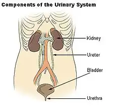 Močový měchýř (Vesica urinaria) je orgán se stěnami z hladké svaloviny. Uchovává se v něm moč, má objem 600–1200 ml, při naplnění 150–400 ml obvykle osoba pociťuje nutkání močit(číslo se hodně liší podle postavy).[2]