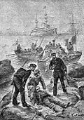 Když se flotila k ostrůvku přiblíží, je již ve vzdálenosti kolem sedmi kilometrů od pobřeží pomocí bleskometu zničen první křižník (britský). Druhá loď však před útokem vyvěsí francouzskou vlajku. Na tu nedokáže Thomas Roch vystřelit, neboť je to vlajka jeho vlasti. Uvědomí si, co způsobil, prchne do nitra ostrůvku a zde odpálí zbylou výbušninu. Celý ostrůvek je i s piráty rozmetán a při výbuchu zahyne také Roch i se svým vynálezem. Jediný, kdo přežije, je Simon Hart.