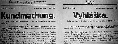 - ↑ a b HERTL, Jan. Dějiny vystěhovaného kraje mezi Vltavou a Sázavou za okupace v letech 1942-1945. In: TYWONIAK, Jiří. Sborník vlastivědných prací z Podblanicka. Praha: [s.n.], 1957.