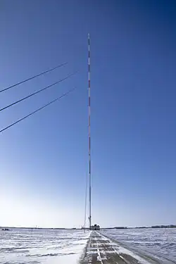 - Anténní stožár – věž nebo stožár, nejnápadnější a architektonicky výrazně provedená část vysílacího střediska. Vysílací antény mohou být umístěny i na jiném, dostatečně vysokém objektu.