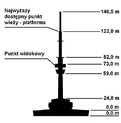 | Výška stavby | 146,5 m, do roku 1993 výška 162 m |