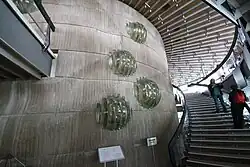 Vnější plášť má v úrovni třetího až pátého podlaží (tedy v místech restaurace a hotelu) tvar kuželové rotační plochy a na každém podlaží je tvořen 64 kónicky umístěnými panely s povrchem z anodizovaného hliníkového plechu. V úrovni restaurace jsou tyto panely po celé šířce proskleny a doplněny nízkým parapetem, v úrovni ubytovacích pater jsou v panelech umístěna menší okna se zaoblenými rohy.[15]