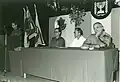Slavnostní promoce 10. ročníku Vysoké školy národní bezpečnosti, 1983. Zleva doprava: Efrajim Lapid, velitel školy Ja'akov Even, ministr obrany Moše Arens a Ramatkal Moše Levi. -