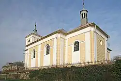 ![]() Pohled na Vysoké Veselí od hřbitova | |