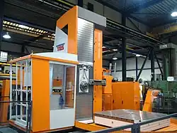 - Desková vyvrtávačka je určena pro velké obrobky. Má příčné lože po kterém se pohybuje stojan s vřeteníkem a výsuvným smykadlem. Upínací deska je pevně spojena s betonovým základem stroje, takže obrobek se nepohybuje.[1] Jako alternativa resp. doplněk k upínací desce může sloužit otočný stůl.