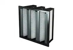 Tyto filtry se skládají z několika filtračních paketů pracujících v systému V nepropustně upevněných ke konstrukci filtru polyuretanovou nebo silikonovou (odolnou proti vyšší teplotě) směsí. Filtrační paket je filtrační papír vyrobený ze slisovaného rouna skleněných mikrovláken plisovaný technikou minipleat. Velmi odolná a pevná konstrukce těchto filtrů umožňuje práci v systémech s proměnlivým a turbulentním proudem vzduchu. Filtry typu V jsou klasifikovány v souladu s normou EN 779: 2012 a EN 1822: 2009 a jsou vyráběny v rozmezí tříd filtrace M6 – H13.