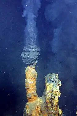 Hydrotermální průduchy, zvané také černí kuřáci, se nacházejí na mořském dně ve velkých hloubkách (kolem 2000 metrů) v blízkosti středooceánských hřbetů. Z „kuřáků“ proudí velké množství horké zásadité mineralizované vody, která se mísí s chladnou, mírně kyselou vodou okolního oceánu. Díky tomu se obsažené minerály v okolí průduchů srážejí.
