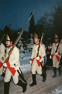 Symbolicky už 2. prosince 1989 vydala své programové prohlášení Československá napoleonská společnost (ČSNS) se sídlem ve Slavkově, která se přihlásila k odkazu své prvorepublikové předchůdkyně a 12. ledna 1990 uspořádala svoji ustavující schůzi.[63][83][85] Předsedou společnosti se stal Jan Špatný,[80] který téhož roku vystřídal Jiřího Pernese ve vedení slavkovského muzea,[76] a členská základna se postupně rozrostla téměř ke dvěma stovkám.[40] Později téhož roku vznikla také Československá společnost vojenské historie (ČSVH) a přihlásila se ke členství v nedávno v Curychu ustavené Evropské unii uniformovaných a střeleckých sborů v rámci UNESCO,[83] v prvních letech získala pobočky téměř ve 20 městech Československa.[86]