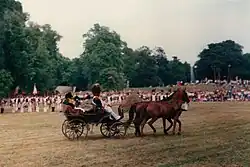 Úspěch napoleonské výstavy vedl představitele města Slavkova k myšlence opakovat akce podobného charakteru.[25] Dne 10. září 1933 se uskutečnily Napoleonské hry ve formě masového venkovního divadla v zámeckém parku za účasti asi 550 účinkujících z řad místních ochotníků, příslušníků československé armády i členů souboru Zemského divadla v Brně – v Napoleonově roli vystoupil a představení režíroval Otto Čermák.[21][26][27][28] Historické oděvy byly vypůjčeny z Prahy, Paříži i Vídně, z valtického zámku pak kočár císaře Františka, program zakončený ohňostrojem natáčela filmová společnost Legiafilm. Událost pod záštitou francouzského velvyslance Léona Noela sledovalo 20 tisíc diváků.[28]