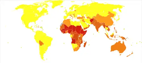 | Mortalita | 2 na 100 000 v Asii 4 na 100 000 v Africe |