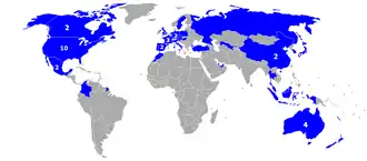 Rozložení turnajů WTA Tour 2009 podle zemí.