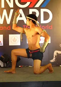 Prvně bojovník před zápasem vykonává Wai Khru, třikrát dokola obchází ring předtím, než si klekne a 3x se pokloní jakožto důkaz respektu k bohu a člověku. Také se uklání Buddhovi, aby ho požádal o ochranu pro sebe i svého soupeře a o čestný souboj.[1]