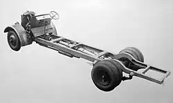 Rozvor 4800 mm, rozchod vpředu 1780 mm a vzadu 1685 mm. Pro autobusy měl podvozek prodloužený rozvor na 5900 mm, se kterým dosahoval rychlosti max. 55 km/h.[11] Vzdálenost od země činila v zatíženém stavu jen 59 cm. Hmotnost podvozku 2300 kg, nosnost 4200 kg. Pneumatiky 36×8,25“ pro autobusy a 34×7“ pro nákladní dopravu. Na zadní nápravě byla kola montována dvojmo (dvoumontáž).[4]