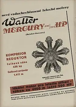 - ↑ SCHMID, J. ing. Letecký motor Walter-Mercury IRC. Letectví. 1931-10, roč. XI. (1931), čís. 10, s. 373–375. Dostupné online.