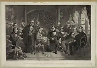 - ↑ Na obrázku zleva doprava: Henry Theodore Tuckerman, Oliver Wendell Holmes, Sr., William Gilmore Simms, Fitz-Greene Halleck, Nathaniel Hawthorne, Henry Wadsworth Longfellow, Nathaniel Parker Willis, William Hickling Prescott, Irving, James Kirke Paulding, Ralph Waldo Emerson, William Cullen Bryant, John Pendleton Kennedy, James Fenimore Cooper, George Bancroft