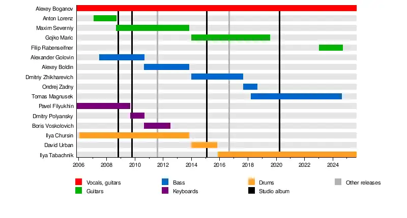 | Filip Rabenseifner - kytara Tomáš Mangusek - baskytara Ilya Chursin Alexander Golovin Max Fomin Pavel Filyukhin Alexey Boldin Boris Voskolovich Dmitrye Zhikharevich David Urban Ondřej Zadny Gojko Marić | |