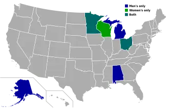 | University of Michigan | Ann Arbor, Michigan | 1817 | 1951–1981 | Stát | 40025 | Wolverines | Muži | 9 (5)† |