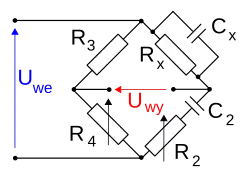 Wienův můstek je jedním z mnoha používaných měřicích můstků.[2] Wienův můstek se používal pro přesné měření kapacity pomocí odporu a frekvence.[3] Byl také používán pro měření zvukových frekvencí.