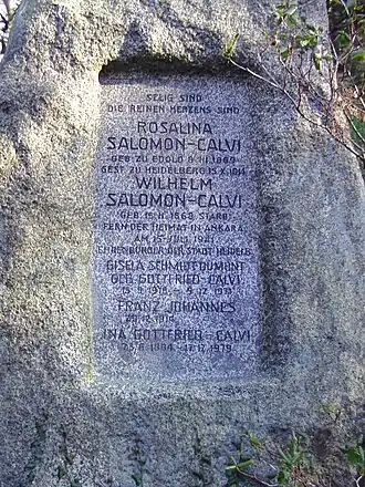 Na hřbitově Bergdriedhof v Heidelbergu se v oddělení Y nachází hrobka Salomon-Calvi. Jako náhrobek pro svou ženu Rosalinu Salomon, rozenou Calvi, která roku 1918 zemřela ve věku čtyřiceti pěti let,vybral tehdy Wilhelm Salomon-Calvi velký menhir, vyrobený z šedé žuly. Prostým písmem jsou do něj vytesána životní data manželky a dalších členů rodiny zde pohřbených. Jako vzpomínku na Wilhelma Salomona-Calvi, nechala rodina na náhrobek vytesat jeho životní data s poznámkou, že byl pochován daleko od své vlasti, v Ankaře.