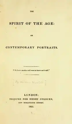 - The Spirit of the Age (1825, Duch doby), soubor portrétů dvaceti pěti autorových literárních současníků (například Bentham, Godwin, Coleridge, Walter Scott, Byron a další).