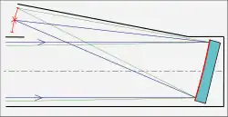 William Herschel vyráběl ve své době jedny z nejlepších a největších dalekohledů. Jeho dalekohledy byly původně Newtonova typu, kde objektiv tvoří parabolické zrcadlo. Paprsky se od něj odrážely na malé zrcátko skloněné pod úhlem 45° k ose dalekohledu a procházely tak na kolmo umístěnou část, kde byla spojná čočka.[23]
