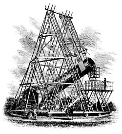 - Od roku 1789 mu na pozemku ve Slough stál teleskop s průměrem zrcadla 122 cm a ohniskovou vzdáleností přibližně 12 m. Jím objevil dvě družice Saturnu, měsíce Enceladus a Mimas. Tento teleskop byl však natolik velký, že jej Herschel příliš nepoužíval. V roce 1839 byl rozebrán a dřevěná konstrukce, na které byl zavěšen byla stržena.[6] Část teleskopu se nachází v areálu National Maritime Museum v Greenwichi.[24]